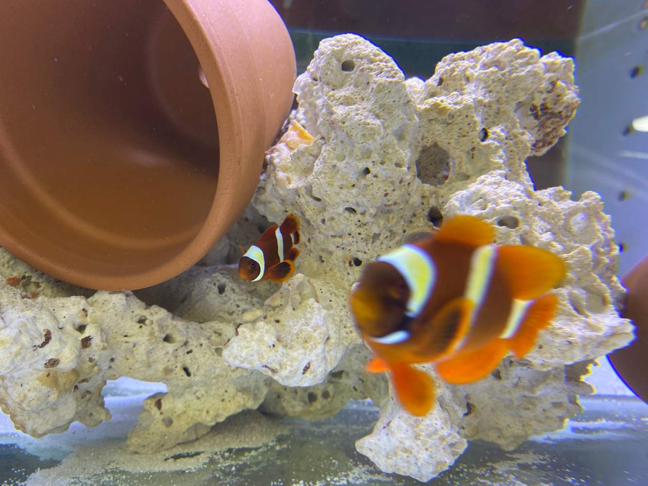 When pouring the water in attempt to pour in the rocks because this will cause less sand disturbance. You can set up an aquarium just for fish only. You need to add sea salt mixed water small plants and gravels in this aquarium.